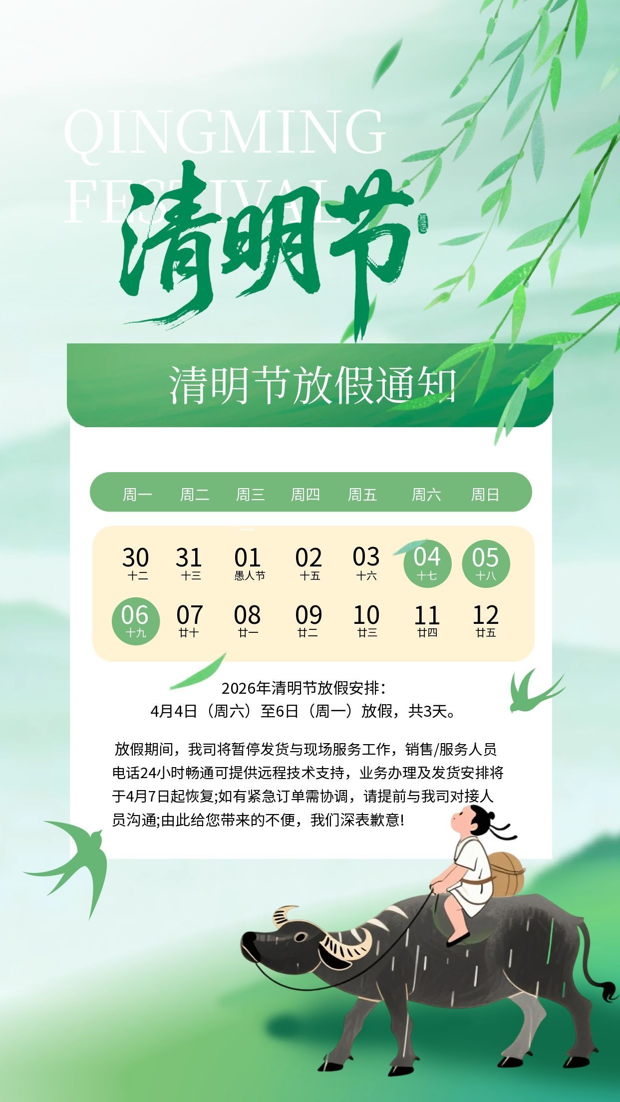 清明节放假通知